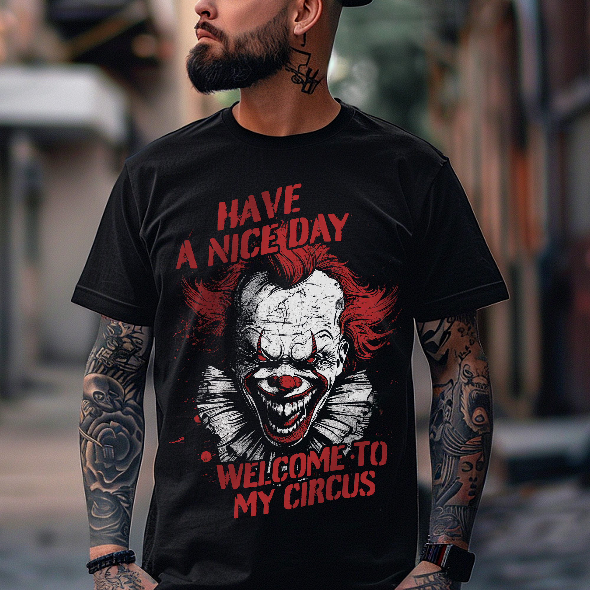Ten wzór to idealna propozycja dla tych, którzy lubią, gdy horror spotyka się z czarnym humorem bez żadnych hamulców. Złowrogi klaun i przewrotne hasło tworzą tu mieszankę grozy, absurdu i totalnego chaosu, która wygląda tak, jakby koszmar sam postanowił opowiedzieć kiepski żart. To koszulka z mocnym charakterem, dużym dystansem i klimatem, który jednocześnie bawi, niepokoi i przyciąga spojrzenia. Idealna dla fanów groteski, psychodelicznego humoru i nadruków, które robią zamieszanie już od pierwszego spojrzenia.