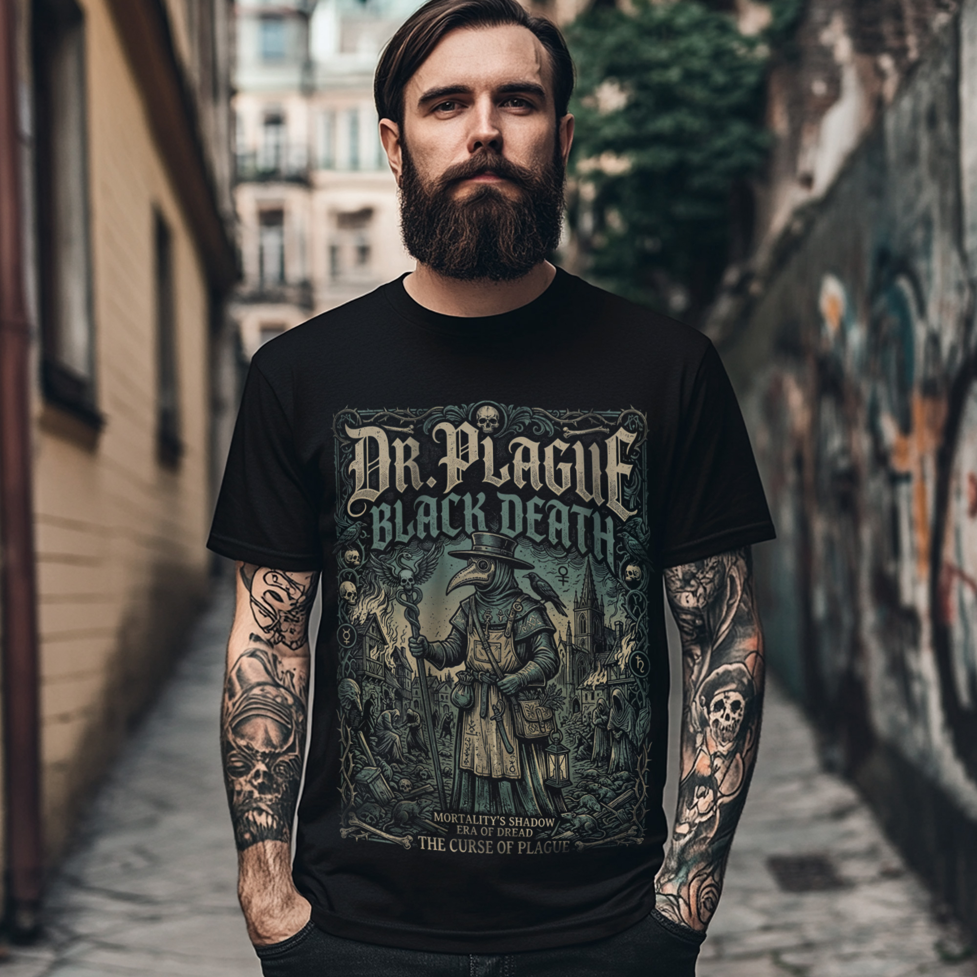 Ten wzór to świetna propozycja dla osób, które lubią mocne, historyczne motywy i ciemną estetykę z charakterem. Inspiracja czasami zarazy i postacią Dr Plague nadaje koszulce wyjątkowy klimat, który od razu przyciąga uwagę. To model dla fanów gotyckich nadruków, dark history i unikalnych grafik, które wyróżniają się na tle klasycznych printów.