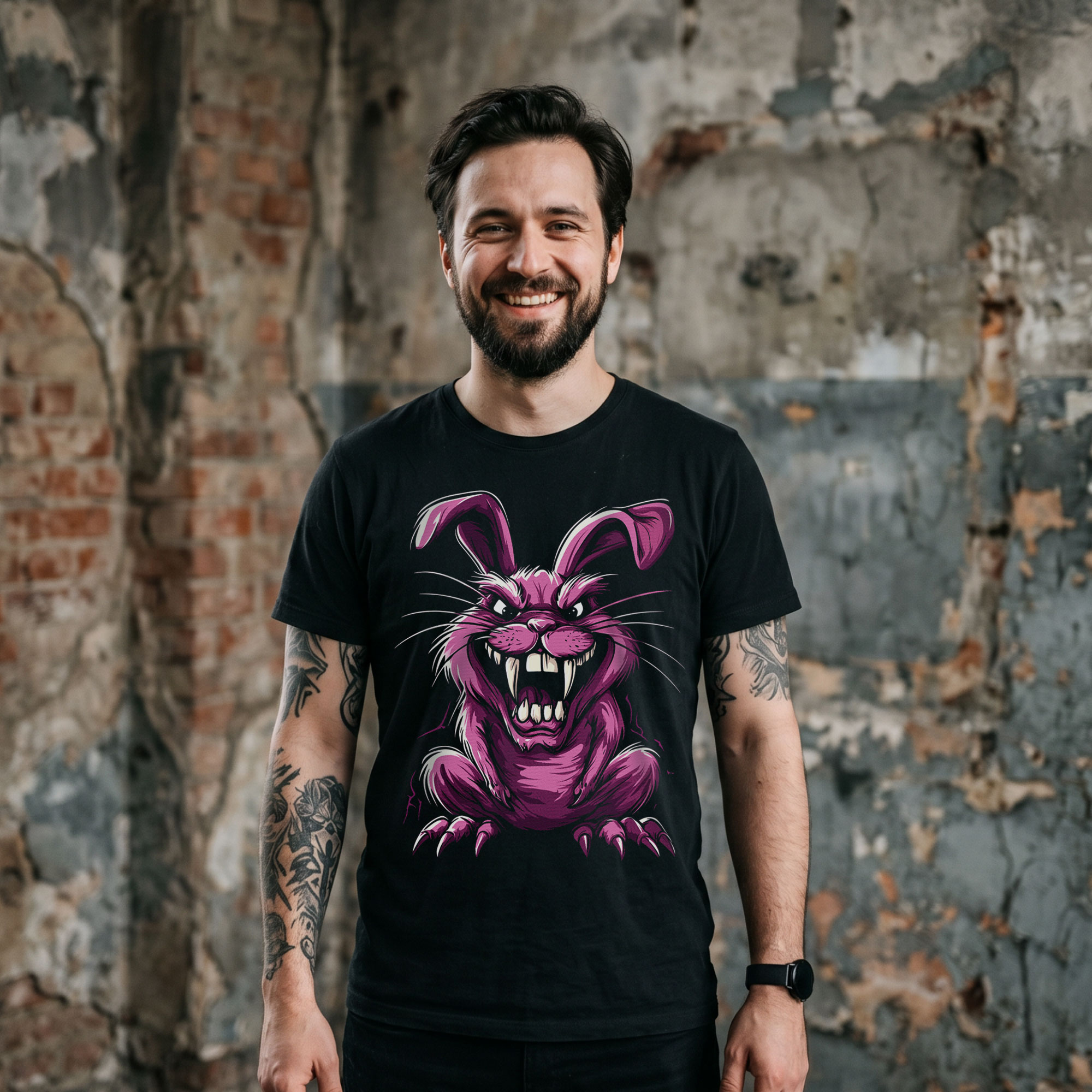 To wzór dla osób, które lubią mocny charakter, przewrotny humor i estetykę z pazurem. Projekt bawi się kontrastem między cukierkowym kolorem a agresywną, przerysowaną formą, dzięki czemu od razu przyciąga uwagę i zostaje w pamięci. Całość ma komiksowo buntowniczy klimat, łączący absurd, lekki mrok i streetwearową bezczelność. Idealny wybór dla klientów, którzy chcą nosić coś wyrazistego, nieoczywistego i z dystansem.